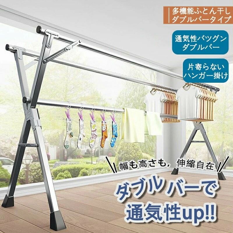 多機能 折りたたみ物干しスタンド 室内干し 屋外 部屋干し 伸縮式 布団干し 物干しハンガー X型 洗濯物干しラック