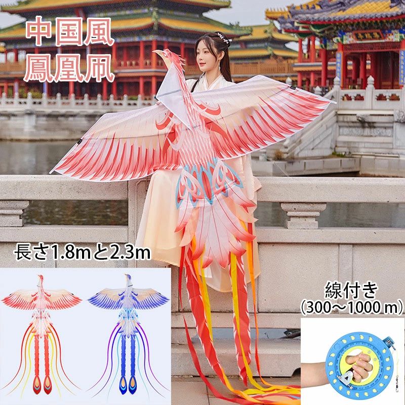 中国風 鳳凰凧 カイト たこ 凧 カラフルカイト たこあげ 玩具 子供 大人 と初心者のための凧 鳳凰 紙鳶 凧揚げ 微風で揚がる おもちゃ オモチャ 線付き(300・1000 )長さ1.8、2.3
