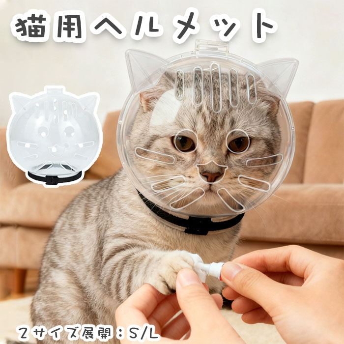 猫ヘルメット 透明なヘッドカバー 爪切り シャワー 行動訓練用の咬傷防止マズル 咬傷予防 旅行 小型猫と犬 外出・通院・ケア作業に大活躍の猫用透明ヘッドカバー