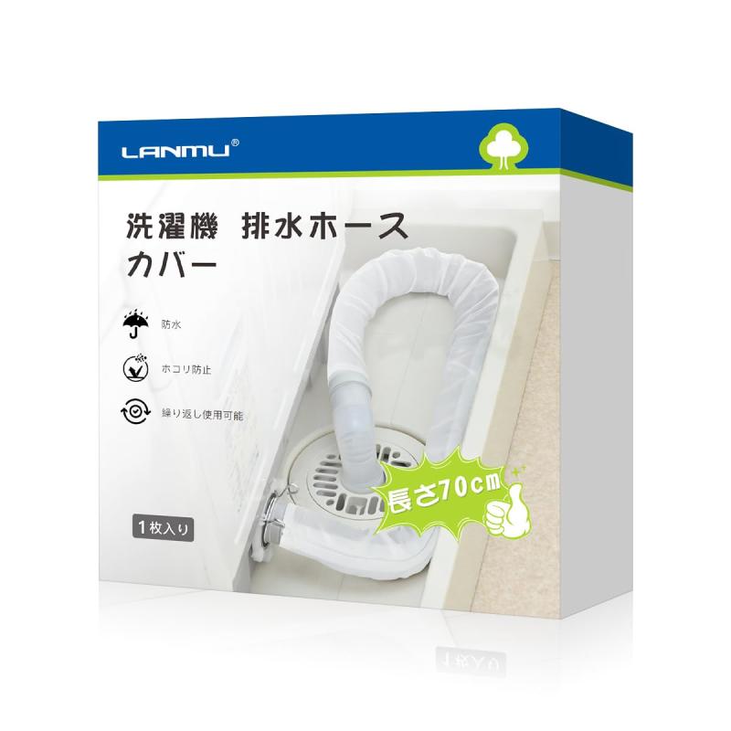 LANMU 洗濯機ホースカバー 1枚入り 洗濯機ホース隠し 排水ホースカバー 洗える ホワイト 防水 防塵 ホコリ防止 排水口 ファスナー 取り付け簡単 繰り返し使用可能