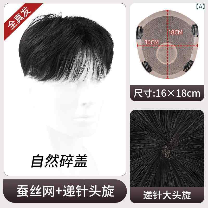 メンズ ウィッグ ショートヘア 自然分け目 トップ補発 人間毛 隠形 増発 ボリュームアップ 目立たない ヘアピース リアルヘア 日常使い 部分ウィッグ 薄毛カバー