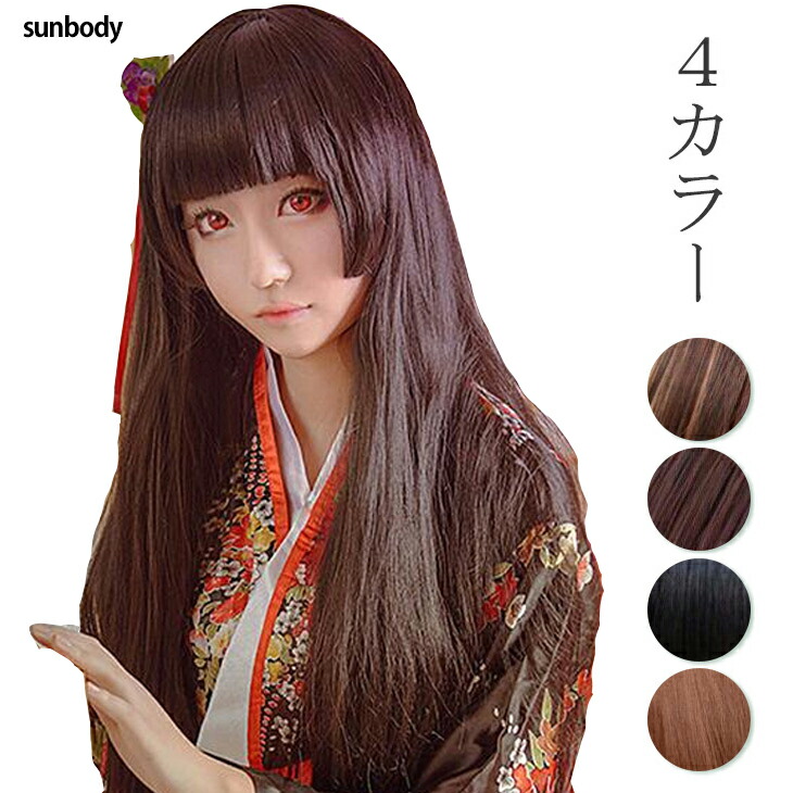 送料無料 ウィッグ 姫髪 フルウィッグ コスプレウィッグ ロングストレートウィッグ ぱっつん 地獄少女 閻魔あい 秋山澪 暁美ほむら 白鬼院凜々蝶