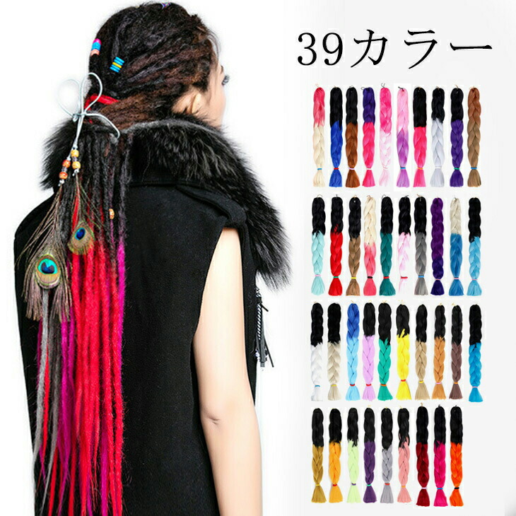 送料無料 ヒップホップ ダンス テグラデーション ヘア エクステンション 編み込み ブレーズ みつあみ 三つ編み エクステ レゲエ ダンサー 髪型 カラフル カラーエクステ 毛束