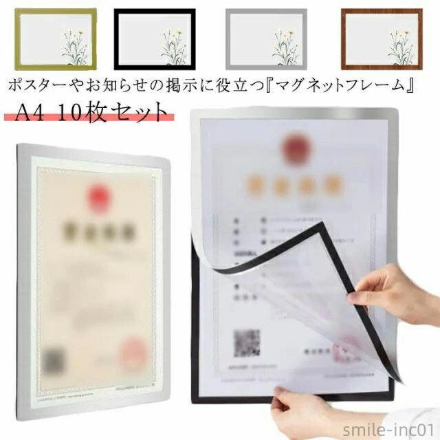 掲示物 掲示 ポスターフレーム オフィス用品 薄型 軽い 差し替え簡単 磁石 はがせる 移動式 シート 10枚セット A4 フレーム 貼る