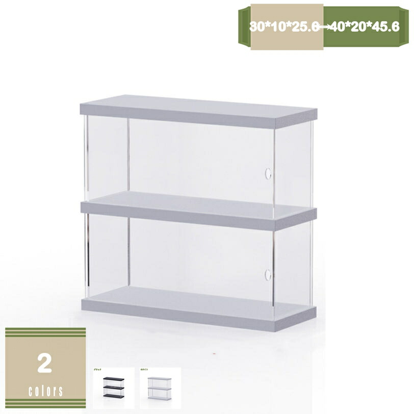 2段 ディスプレイケース 卓上 アクリルケース ショーケース 卓上整理用 コンパクト 透明ケース 模型 人形 フィギュア 保護 展示ケース 台座付き 収納ケース 防塵カバー ショーケース
