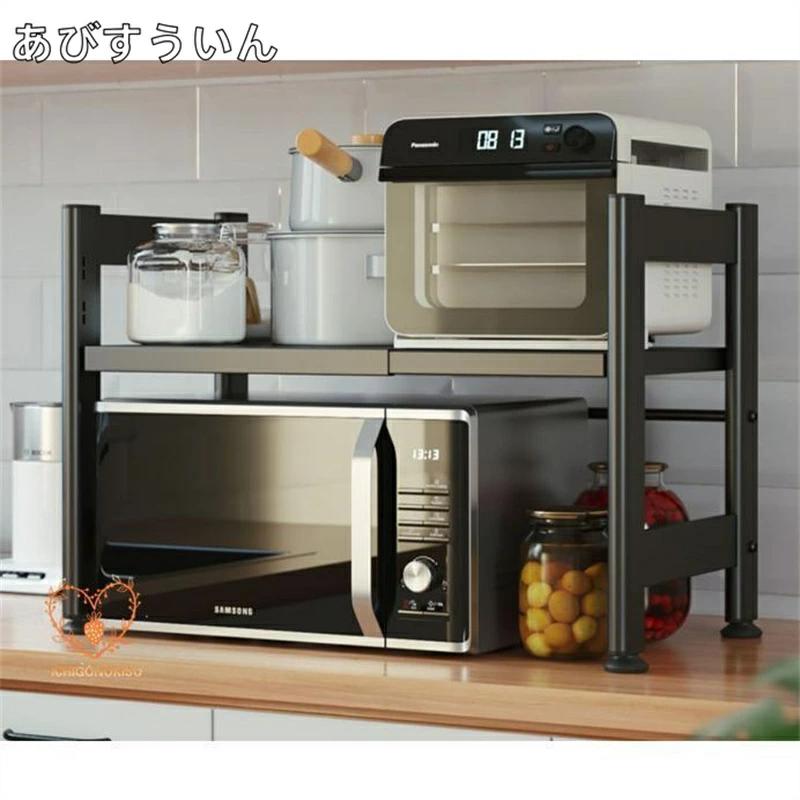 レンジ上ラック 1段 2段高さ調整 キッチンラック 棚 レンジラック カウンター上 収納棚 レンジ台 トースターラック カウンター上収納 ラック