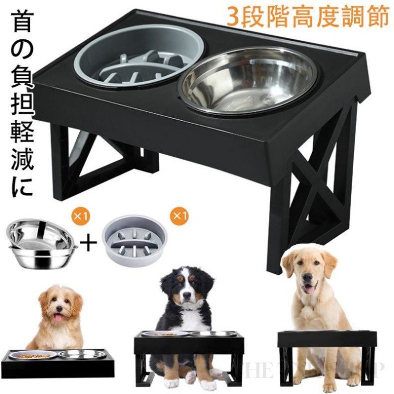 犬 食器 フードボウル 犬用 食器台 大型犬向け 折り畳み昇降式?3段階 高度調節