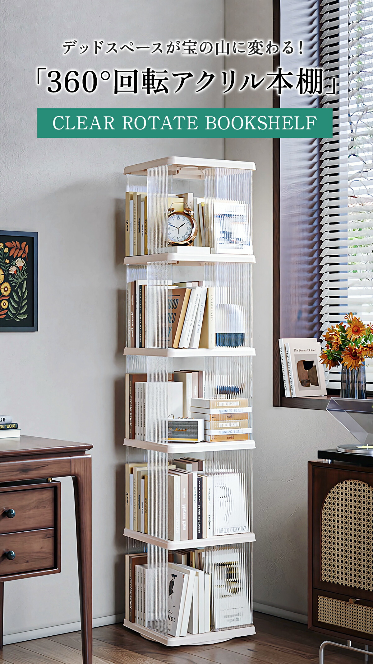 2段 / 3段 / 4段 / 5段 回転式本棚 大容量 本棚 回転 360°自由に回転 透明 回転式本棚 教科書 ブックシェルフ 絵本ラック ラック 飾り棚 組立簡単 省スペース 絵本棚 本ラック