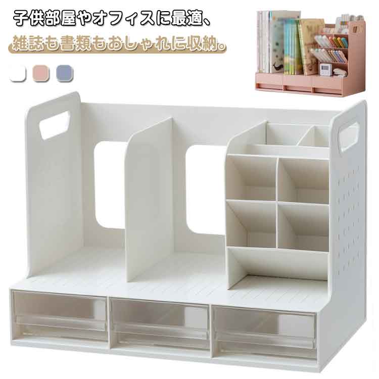 A4 ファイルボックス 本棚 ブックスタンド ペンスタンド 斜め 多機能 文房具 収納ケース 収納ラック 引き出し付き 卓上 整理棚 マガジンラック 雑誌収納ボックス 本立て ペン立て ペン 書類整理
