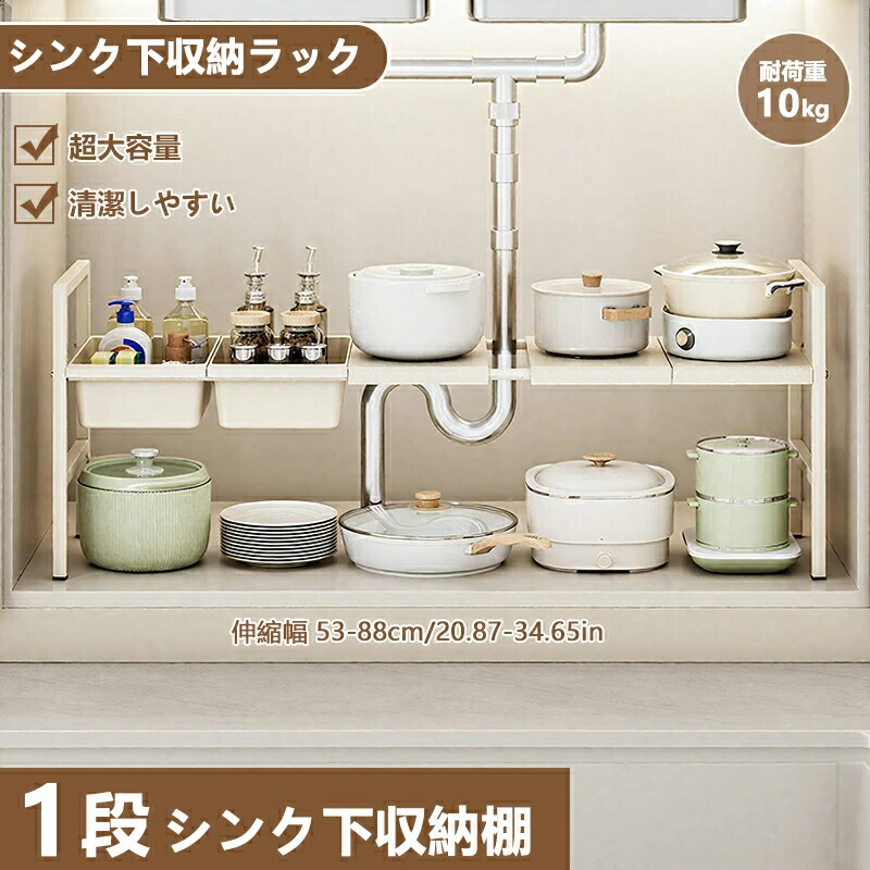 収納 台所収納 収納棚 フライパン 収納 シンク下収納ラック 収納ラック 整理 収納排水トラップを避けて設置できる棚 スペース シンプル 雑貨洗面台下 収納 流し台下