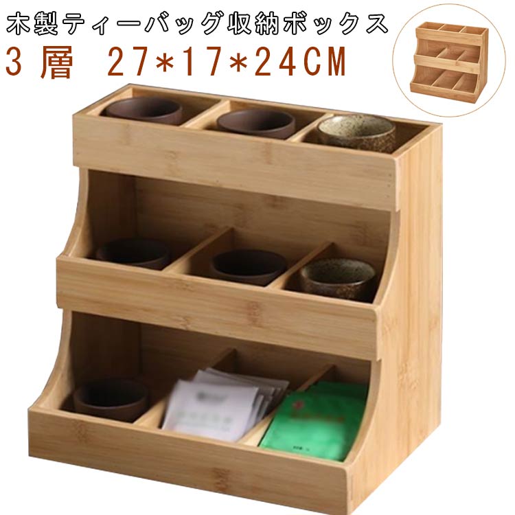 天然木製 収納ボックス お茶 紅茶パック ティーバッグケース 収納棚 ティーバッグ収納ラック 3層 木製 縦型 ティーバッグホルダー