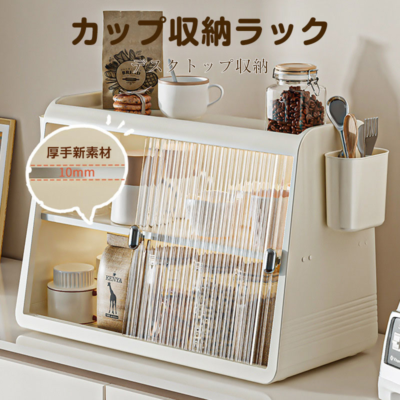 キッチン収納 食器棚 卓上 ミニ食器棚 カップスタンド カップ収納 コップラック ミニカップボード 卓上収納コップ 収納棚 防塵 防湿 お茶碗収納ボックス お手入れ簡単 大容量カッ 扉付き卓上食器棚