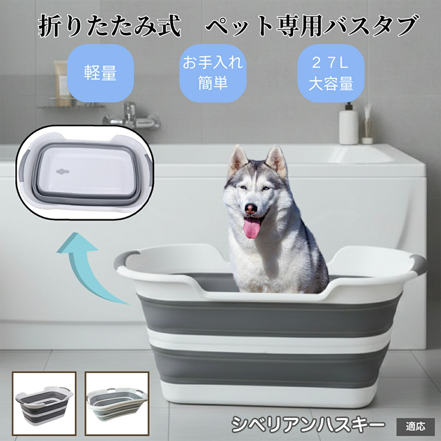 ペット用折りたたみバスタブ 猫 犬 小型犬 足洗い 足湯 シャンプー 多用途たらい 水抜き栓付き コンパクト収納 軽量 持ち運び便利 アウトドア お手入れ簡単 シベリアンハスキー犬 ハスキー 車載OK