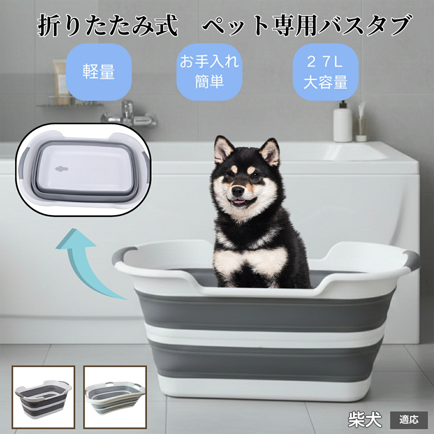 ペット用折りたたみバスタブ 猫 犬 小型犬 足洗い 足湯 シャンプー 多用途たらい 水抜き栓付き コンパクト収納 軽量 持ち運び便利 アウトドア お手入れ簡単 柴犬種 柴 車載OK