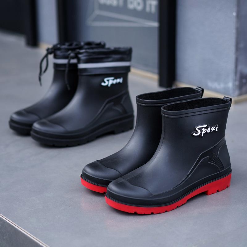 雨靴 男性用 短筒 アンクル丈 防滑 収口 保温 加温 防水 ゴム素材 工事現場用 アウトドア 作業 秋冬 普段使い 軽量 耐久性 通勤