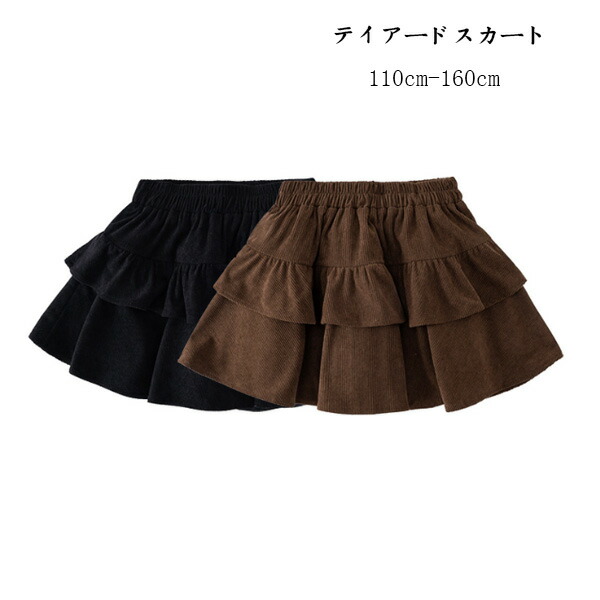 韓国子供服 女の子 ティアードスカート ブラック ブラウン スカート 卒園式 入学式 卒業式 コーデュロイ キッズ 発表会 七五三 おしゃれ 春着 冬着 通学 通園 秋着