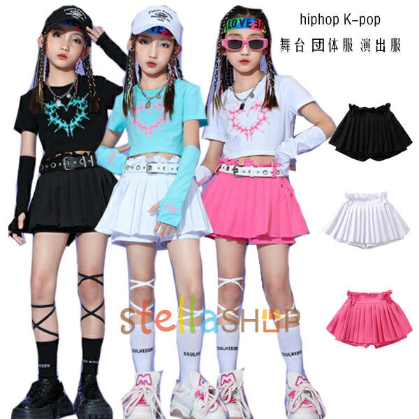 ダンススカート キッズ hiphop K-pop 舞台 団体服 演出服 かわいい スカート 女の子 プリーツスカート 公演服 チアガール 練習着 ダンスウェア 運動会 原宿系 体育祭 文化祭 応援団