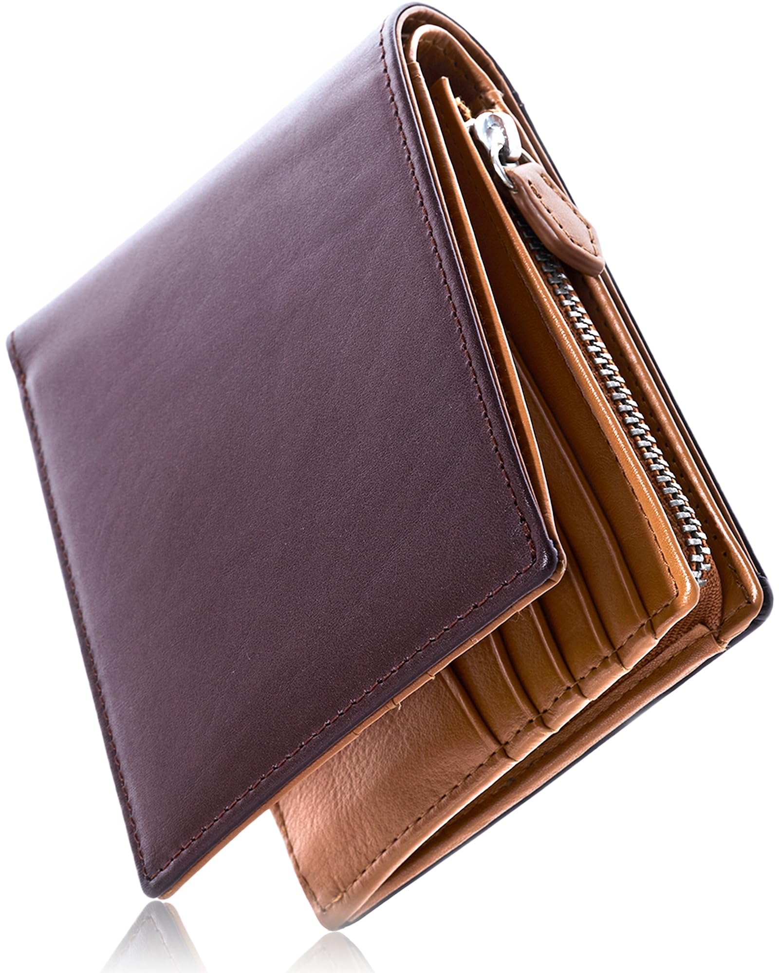 財布 メンズ 2つ折り 大容量 カードが20枚入る 本革 二つ折り財布 ファスナー (ダークブラウン)